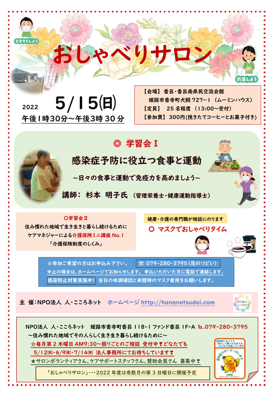2022年5月1日 by 人・こころネット スタッフ 5月おしゃべりサロンのお知らせ こんにちは、人・こころネットです😊🍀 三寒四温のこの頃ですが、皆さまいかがお過ごしでしょうか☕💕 5月おしゃべりサロンのお知らせです📝 会場では手指消毒やマスク着用、検温など、コロナ対策の上実施を予定しております🤒 皆さまのご参加を心よりお待ちしております。 ご参加される方はお気をつけてお越しくださいませ。 尚、新型コロナウィルス感染状況により、延期または中止となる場合がございます💁 開催が変更となる場合はこちらのページでもお知らせしますので、よろしくお願いいたします🙇 Facebook で共有するにはクリックしてください (新しいウィンドウで開きます) Facebook クリックして友達にメールでリンクを送信 (新しいウィンドウで開きます) メールアドレス クリックして印刷 (新しいウィンドウで開きます) 印刷 関連