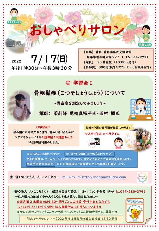 2022年6月26日 by 人・こころネット スタッフ 7月おしゃべりサロンのお知らせ こんにちは、人・こころネットです😊🍀晴れ間の多い梅雨時ですが、皆さまいかがお過ごしでしょうか☕💕 7月おしゃべりサロンのお知らせです📝会場では手指消毒やマスク着用、検温など、コロナ対策の上実施を予定しております🤒皆さまのご参加を心よりお待ちしております。ご参加される方はお気をつけてお越しくださいませ。 尚、新型コロナウィルス感染状況により、延期または中止となる場合がございます💁開催が変更となる場合はこちらのページでもお知らせしますので、よろしくお願いいたします🙇 Facebook で共有するにはクリックしてください (新しいウィンドウで開きます) Facebook クリックして友達にメールでリンクを送信 (新しいウィンドウで開きます) メールアドレス クリックして印刷 (新しいウィンドウで開きます) 印刷 関連