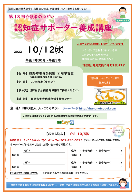 第13回介護者のつどい「認知症サポーター養成講座」を開講します😄✨