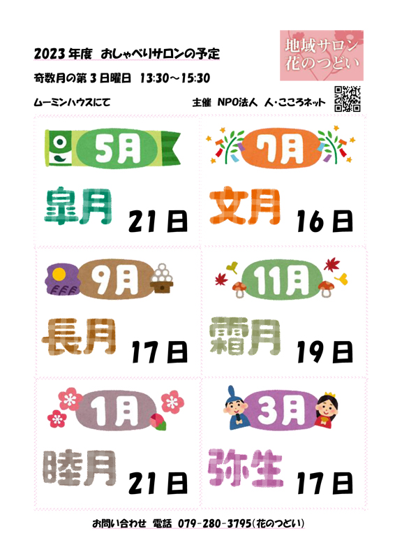 2023年3月26日 by 人・こころネット スタッフ 2023年度 おしゃべりサロンの予定 来年度(2023年度)も奇数月の第3日曜日、13:30~15:30に開催します。 5月21日、7月16日、9月17日、11月19日、1月21日、3月17日を予定しております。皆さまのご参加を心よりお待ちしております。 Facebook で共有するにはクリックしてください (新しいウィンドウで開きます) Facebook クリックして友達にメールでリンクを送信 (新しいウィンドウで開きます) メールアドレス クリックして印刷 (新しいウィンドウで開きます) 印刷 関連