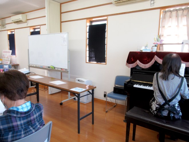 いつものようにピアノ伴奏で「われは海の子」「浜辺の歌」を一緒に歌いました🎹