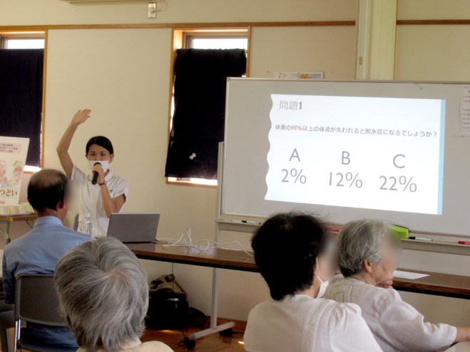 「① 脱水症について」「②薬剤師訪問サービスについて」