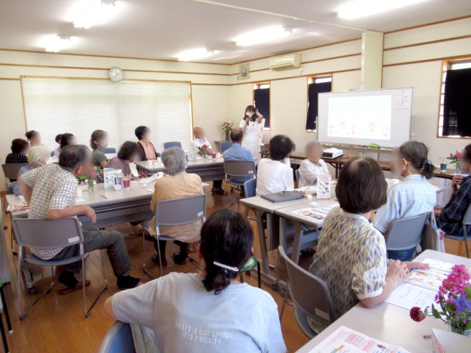 理学療法士さんの講演、コーヒータイム、健康体操、ピアノ伴奏で懐かしい唱歌・童謡2曲、