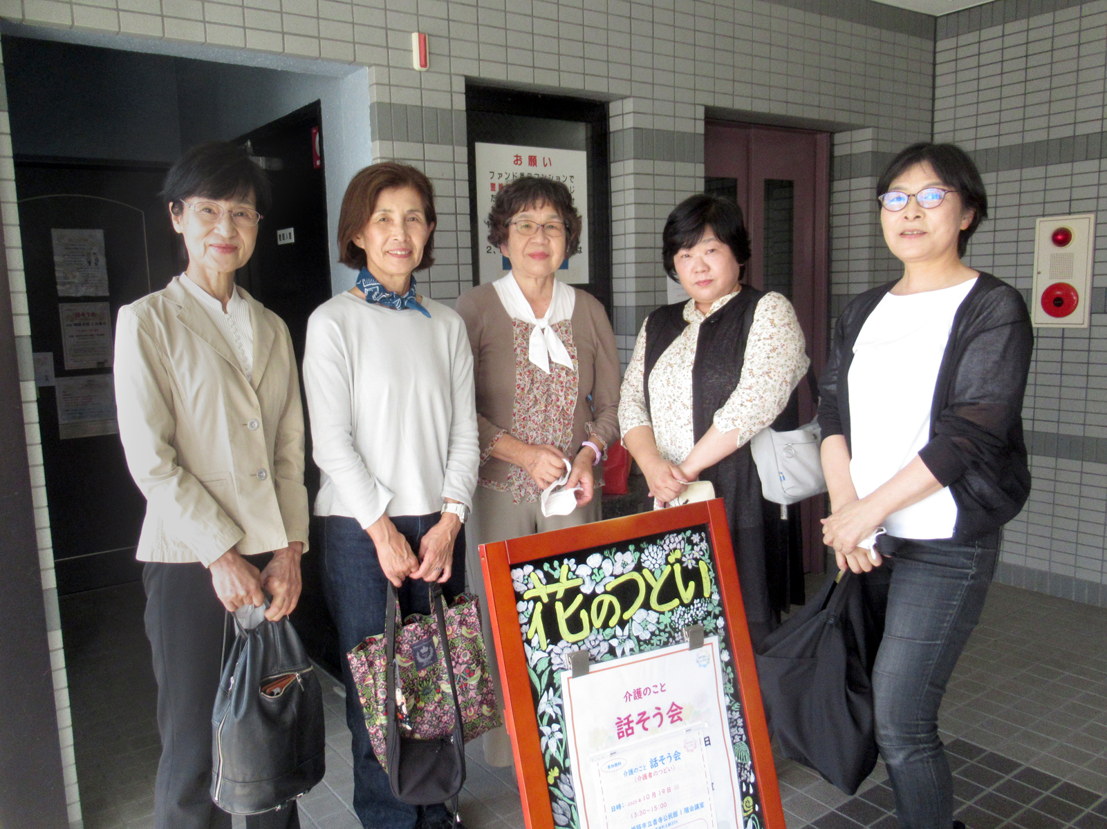 『介護のこと 話そう会』とは、ご家庭で介護をされている方や介護の経験がある方が集い自由に話していただく場です。日頃一人で抱えている介護のストレスや悩みをみんなで話し合い、悩みを共有し、情報交換することで、少しでも気持ちが軽くなればと思いで行っております。