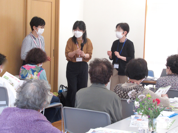 簡単にできるフレイル予防運動、椅子からの立ち上がり、膝の進展などを紹介してくださいました。