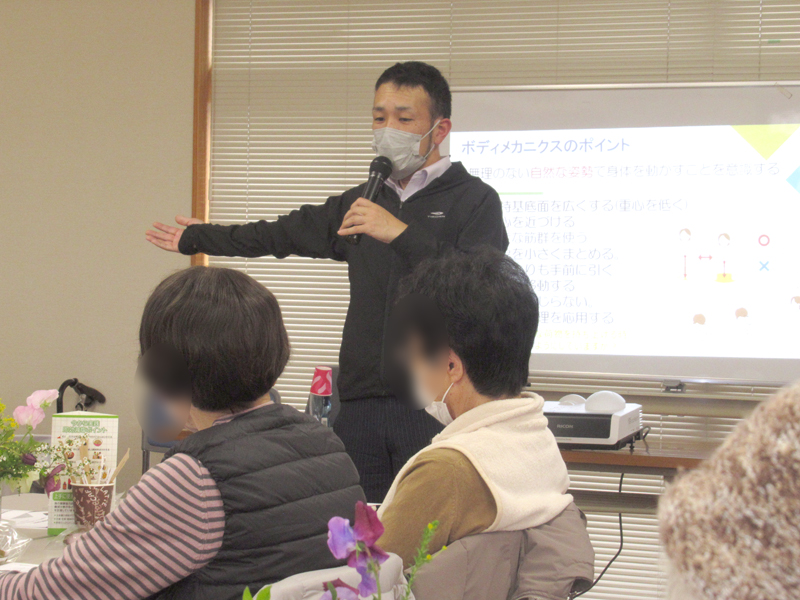参加者のみなさんのアンケートで、「名定先生は大きな声で分かりやすく話してくださり、介護のコツが理解できました」との感想が多かったです😊