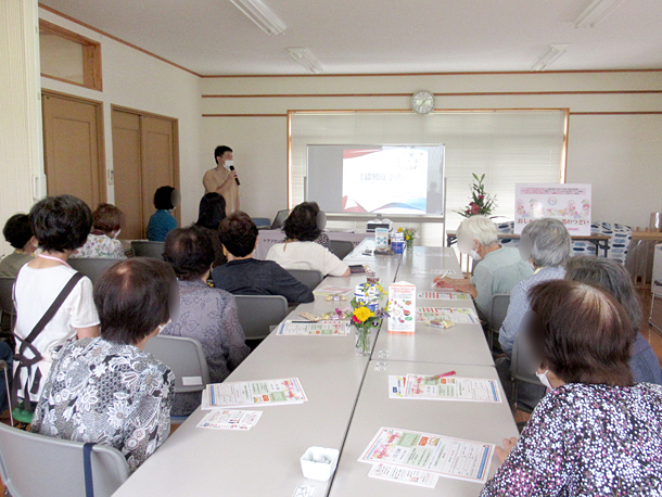 薬剤師さんの講演、コーヒータイム、健康体操、ピアノ伴奏で懐かしい唱歌・童謡2曲、